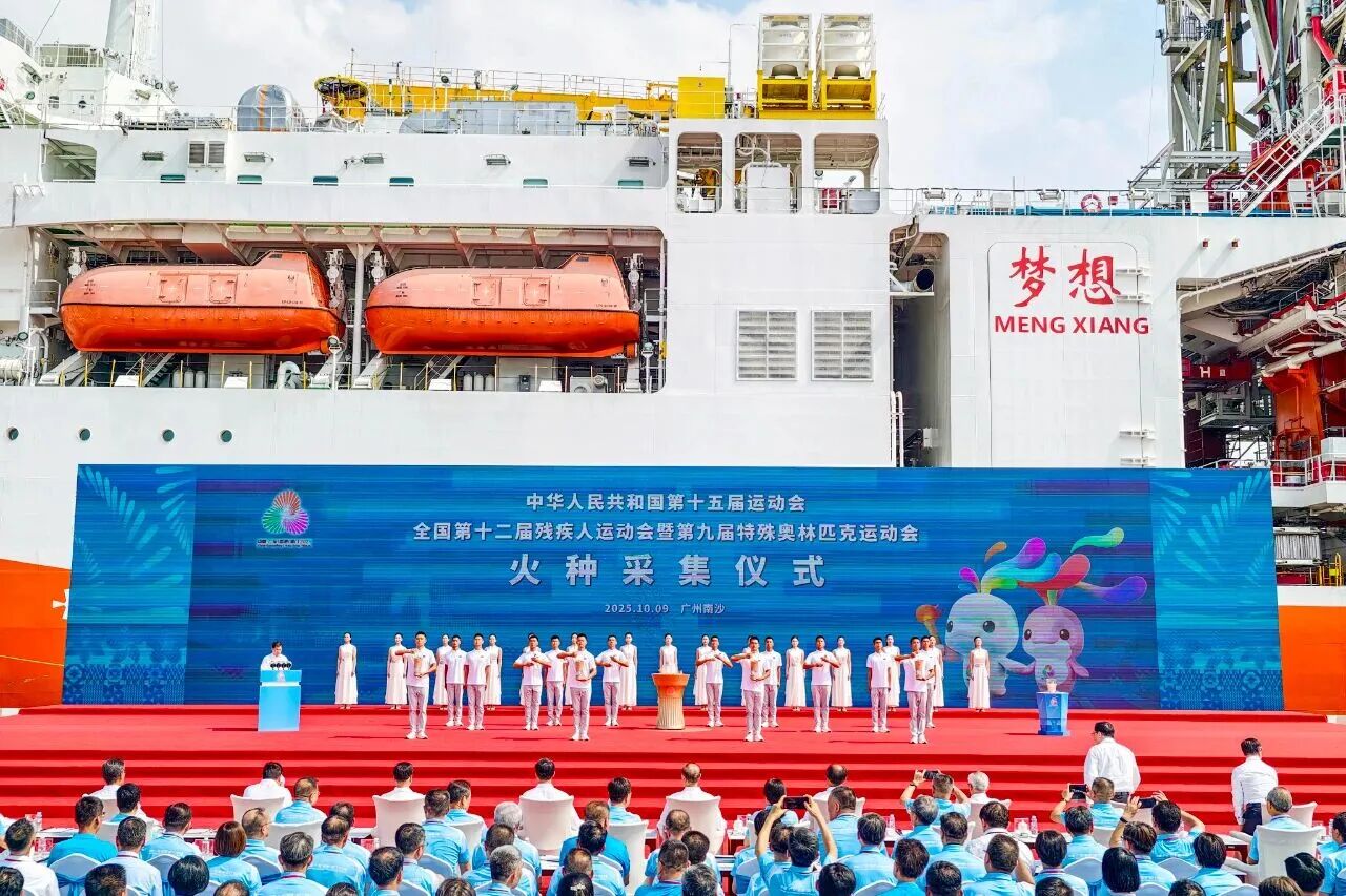 近日,在大洋鉆探船“夢(mèng)想”號的見(jiàn)證下,第十五屆全國運動(dòng)會(huì )和全國第十二屆殘疾人運動(dòng)會(huì )暨第九屆特殊奧林匹克運動(dòng)會(huì )火種采集儀式在廣州舉行。