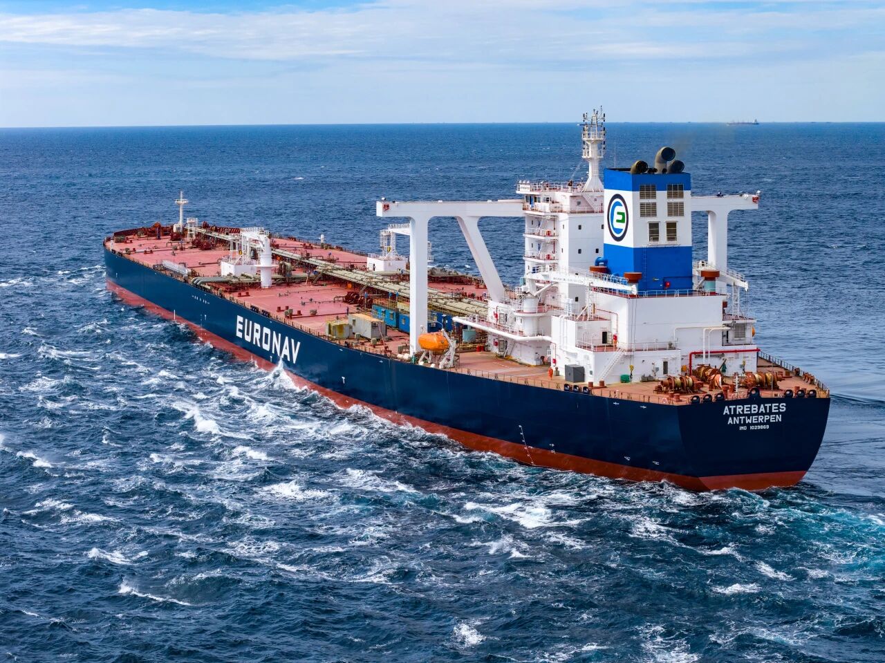 北海造船為比利時(shí)CMB.TECH公司旗下Euronav公司建造的31.9萬(wàn)噸超大型原油船(VLCC)首制船試航凱旋。