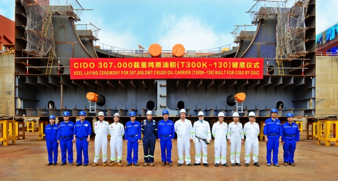 為韓國CIDO SHIPPING建造的30.7萬(wàn)噸超大型原油船130號船提前年度計劃12天實(shí)現鋪底節點(diǎn),進(jìn)入塢內合攏階段。