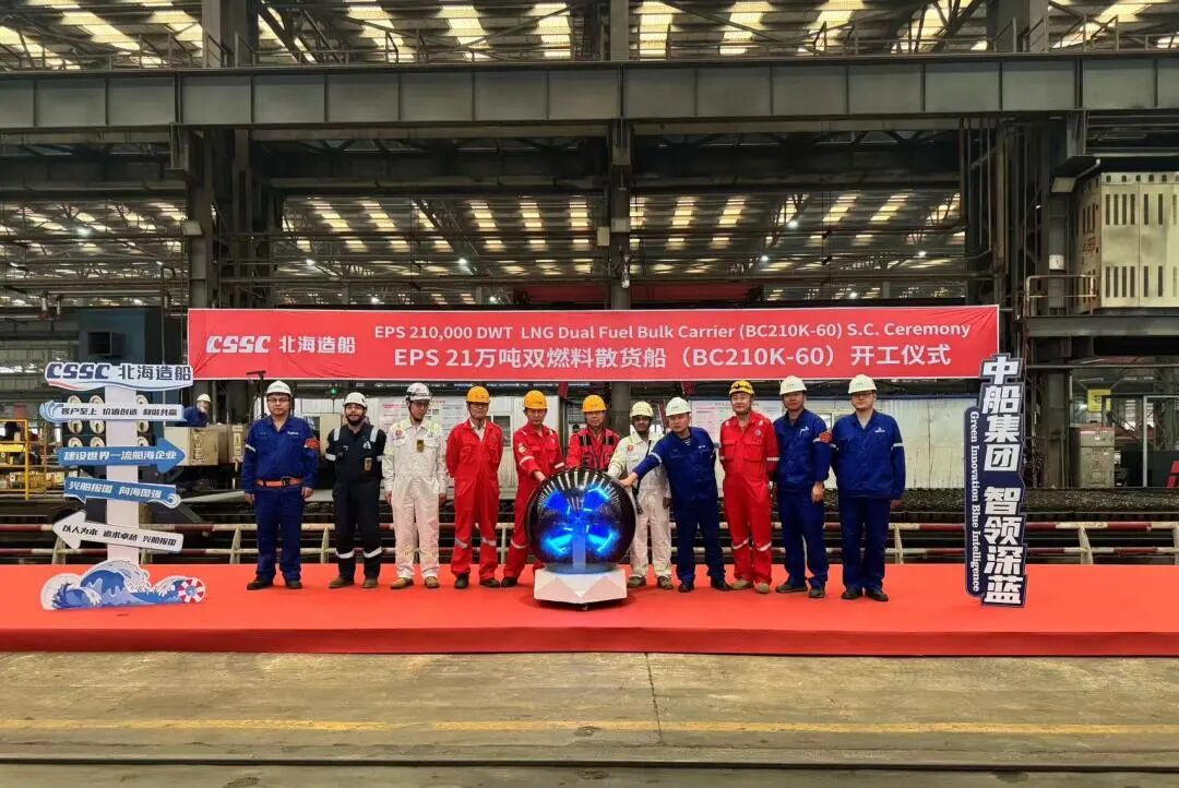 北海造船承建的新加坡EPS公司21萬(wàn)噸液化天然氣(LNG)雙燃料動(dòng)力散貨船項目60號船和比利時(shí)CMB.TECH公司21萬(wàn)噸散貨船項目79號船順利開(kāi)工。60號船是該系列船舶中的第4艘,79號船是北海造船為該船東建造的第27艘同型船。