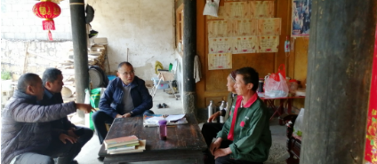 ▲在鄉親家中走訪(fǎng)的杜海榮(中)