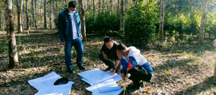 ▲馬翔(中)為集團定點(diǎn)幫扶項目現場(chǎng)選址